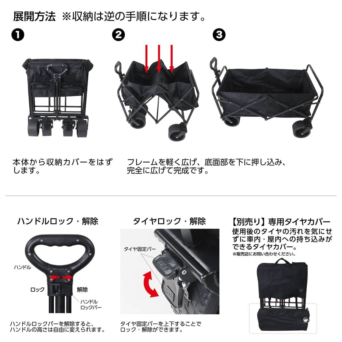 Field to Summit タフワゴン TOUGH WAGON 耐荷重100kg 大容量 折りたたみ ワイドタイヤ ポケット 運搬 台車 便利 頑丈 簡単 防災 アウトドアワゴン キャリーカート キャリーワゴン アウトドアキャリー キャンプ マルチキャリー 初心者 ビギナー | st-service エステーサービス