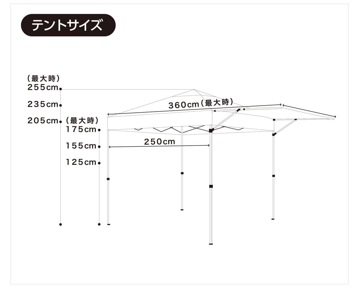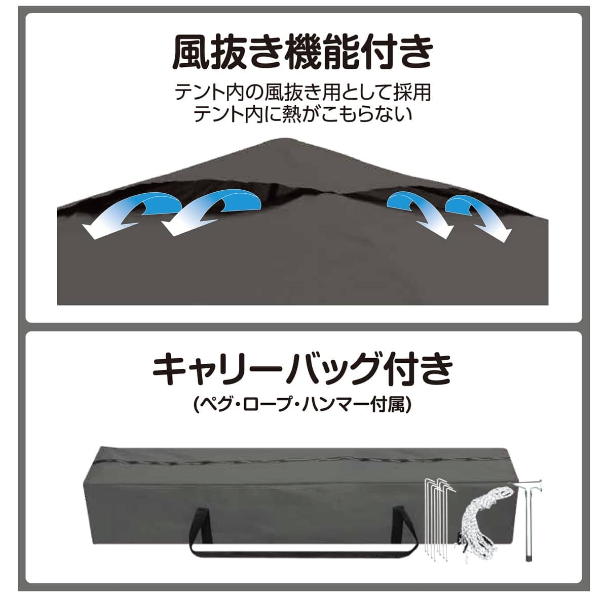 Field to Summit ウイングワンタッチテント250グレーブラック FTSWN250GBB UVカット 遮光率99% ブラックコーティング ウイング付き スチール 簡単 タープ 自立式 日除け ガーデン キャンプ 花見 テント 簡易テント 2.5M 250cm イベント フェス 海 簡単設営