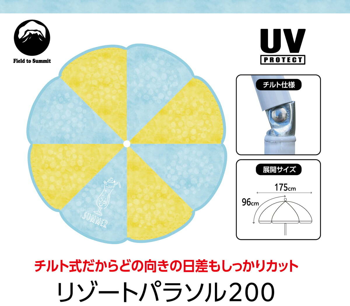 Field to Summit リゾートパラソル200 FTSP200RS ビーチ パラソル UV カット チルト機能 マリンスポーツ キャンプ 庭 日よけ エクステリア 屋外 レジャー 日除け 熱中症対策 UVカット 紫外線対策 海 海水浴